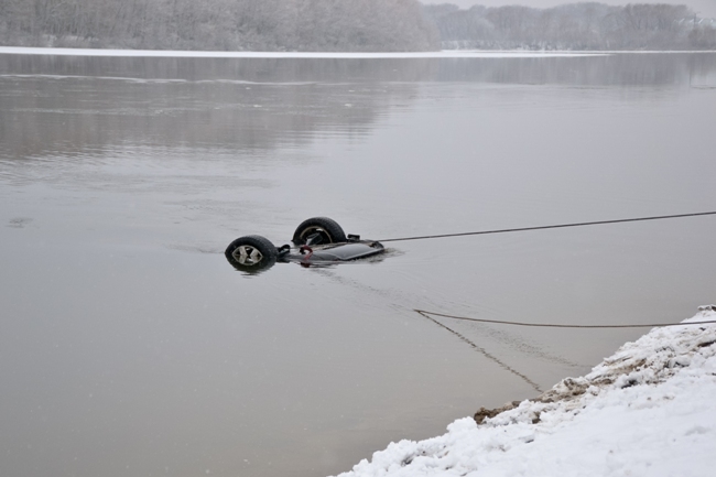 Сегодня, 25 декабря, 12.00 поступило сообщение о том, что спасатели обнаружили авто и наш корреспондент сразу отправился на место событий. Чуть больше часа пытались подцепить крючком машину и где-то 13.30 ее уже начали тащить на берег. Предварительно исследовали найденную машину и в ней обнаружено тело одного человека.