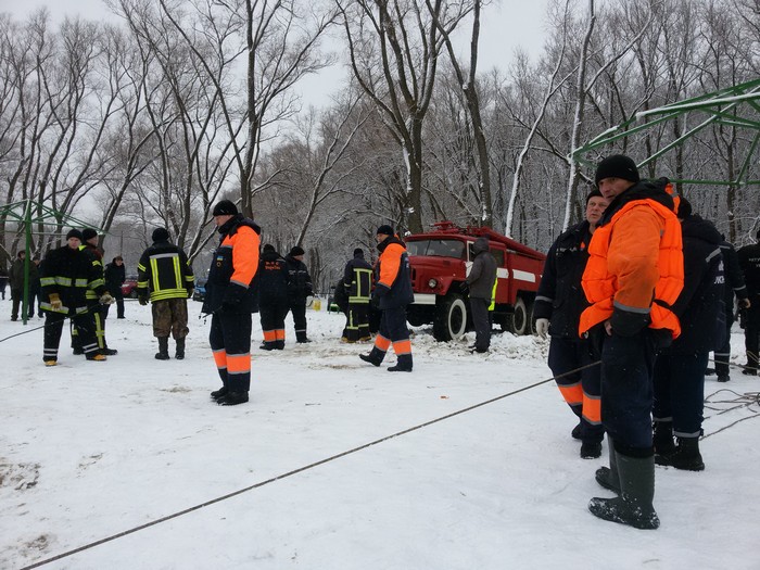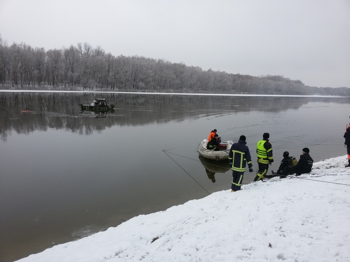 Около 13.20 нашли авто, хотели дотянуть лодкой туда трос и спустить его водолазу. Тот должен был его зацепить за машину. Дотянуть трос с берега водолаз не смог, слишком тяжелый и далеко.
