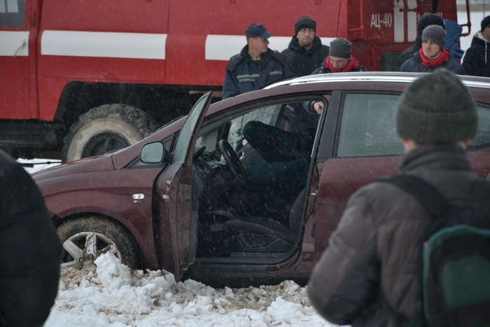 По состоянию на 14.56 на месте продолжает работать полиция, тело водителя продолжает оставаться в автомобиле. На место событий приехала женщина, судя по всему, родственница Павла Румянцева, с ней работает психолог.
