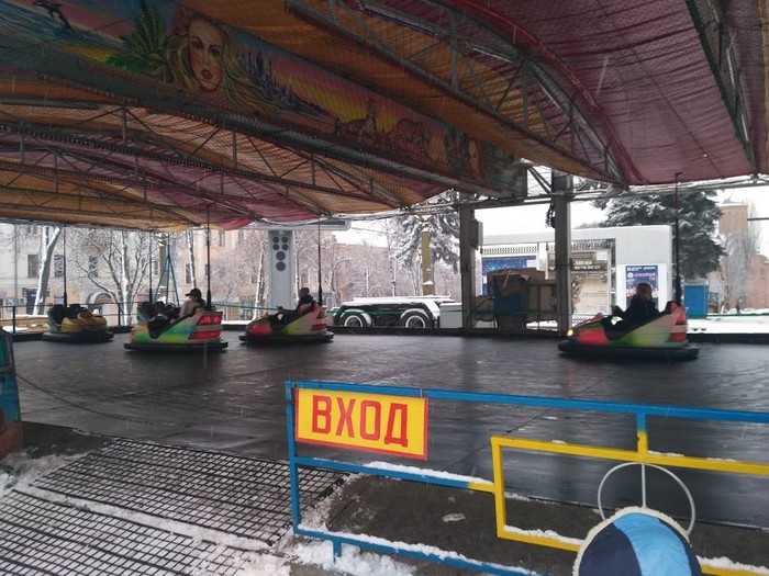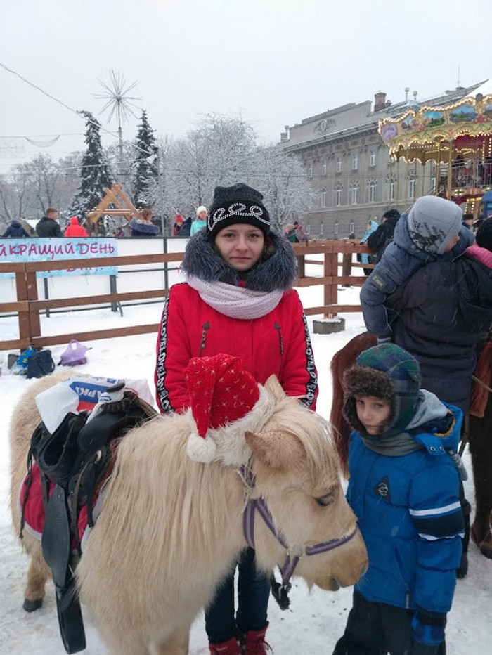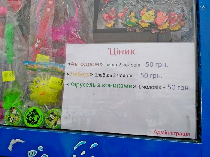 Охочі, крім ковзанів, можуть покататись на поні або віслючку, це коштує 30 грн. за 4 хв. Тварини ласкаві й вільно дають себе погладити. Дітей, які бажають поїздити верхи не бракує.