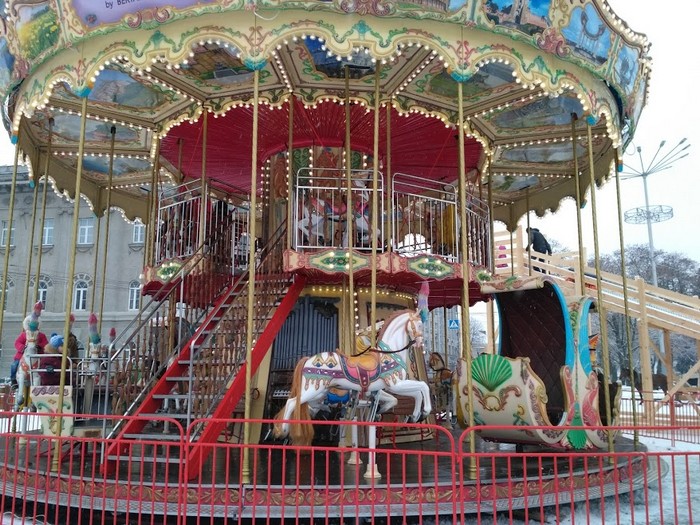На самій площі також є дитячі атракціони: «Автодром», «Карусель з кониками», «Лебеді» - тут кожна дитина зможе покататись і відчути радість Нового Року, а от батькам за це задоволення прийдеться заплатити по 50 грн (за кожен з атракціонів).