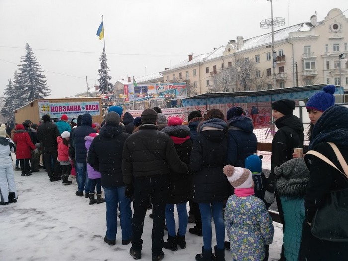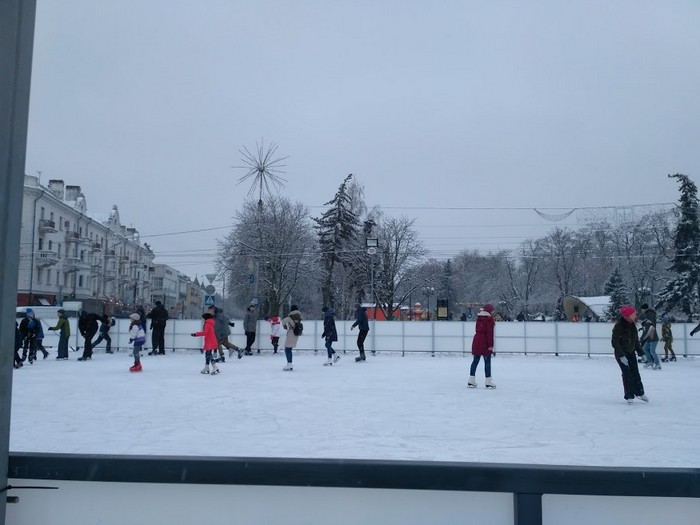 Після перекусу зігнати калорії можна на ковзанці. Щоправда, черга до неї величезна (обідня пора неділі). Охочих не бракує. Ціни залежать від часу і дня, коли ви вирішили покататись. Так, до 16.00 буднього дня це коштує від 20 – до 35 грн., з 16.00 до 22.00 – 30-45 грн. Тариф вихідного дня – від 30 до 45 грн. Тут можна покататись як на своїх ковзанах, так і взяти їх на прокат. Ковзанка працює з 10.00 до 22.00. після кожного сеансу ковзанку чистять.