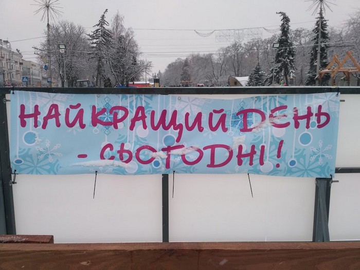 Чернігівці збираються на площі майже кожен день. Не всі можуть похвалитись новорічним настроєм, багато дорікань від громадян на його відсутність, хтось в очікуванні зарплатні, хтось заклопотаний власними негараздами. Але все ж, є люди сповнені оптимізму і залюбки діляться своїм хорошим гумором.