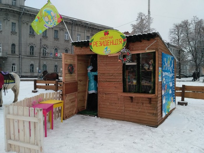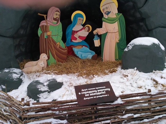 Після резиденції слід сфотографуватись біля традиційного українського вертепу, який знаходиться відразу поруч із ялинкою.
