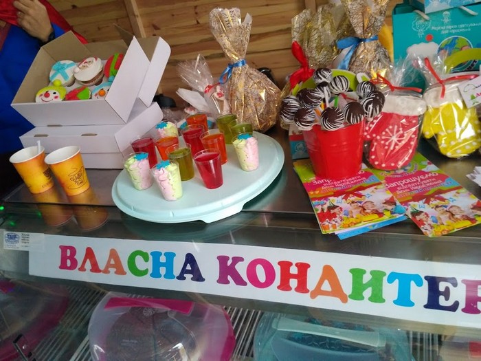 Тут також можна погрітись гарячим чаєм або кавою, з’їсти тістечко чи шматочок торту, придбати солодкий подарунок, в асортименті різноманітні ласощі: цукерки, капкейки, маффіни, пряники, желе тощо. Вся випічка зроблена кондитерською «Дитяча планета».