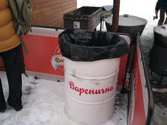 Біля кожного будиночку з їжею стоїть сміттєвий бак. Тож носити пів дня пустий стакан з-під чаю або одноразову тарілку не прийдеться.