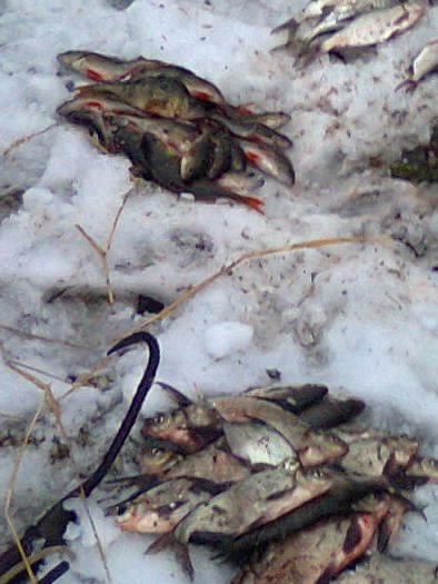 Продовжуючи рейд, о 15:20 інспектори помітили на озері поблизу с. Смолин, ще двох «любителів» рибки. Ними виявились мешканці с. Шестовиця, Чернігівського району. Які за допомогою сітки виловили 4,7 кг риби: 19 шт лящів, 24 шт. окунів, 5 шт. плітки, чим завдали збитків рибному господарству України на 4063 грн.