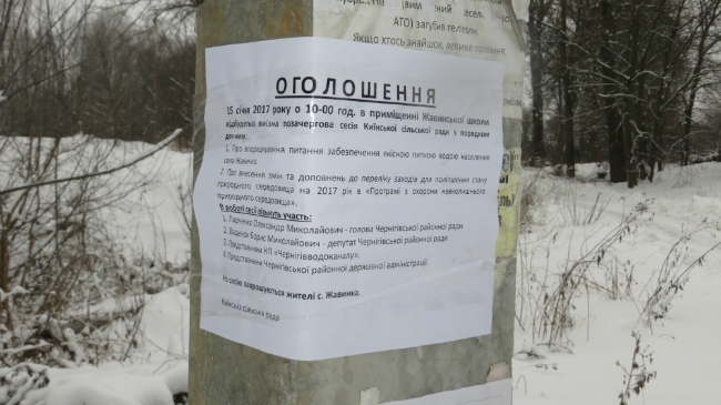 Жители села Жавинка Черниговского района, не заключившие договора с КП «Черниговводоканал» и не оплатившие предоставленную услугу уже после 20 января рискуют остаться без воды – коммунальное предприятие произвело их официальное уведомление об отключении, а также проинформировало об этом руководителей исполнительной власти и органов местного самоуправления. В то же время жители Жавинки уверены, что имеют полное право на бесплатное водоснабжение, поскольку Черниговская ТЭЦ загрязняет воздух в районе их села. Они рассчитывают, что КП «Черниговводоканал» получит запрет на отключение от чиновников, нуждающихся в поддержке электората.