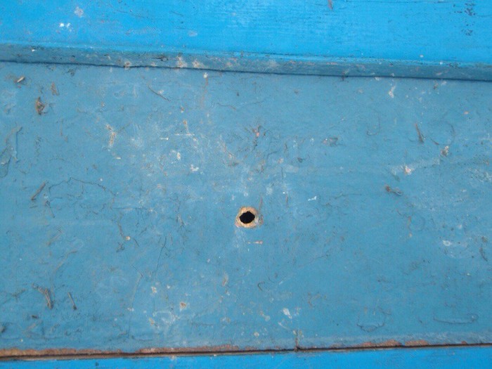 Пулевое отверстие на двери подъезда дома по ул.Пушкина, где живут Салогубы