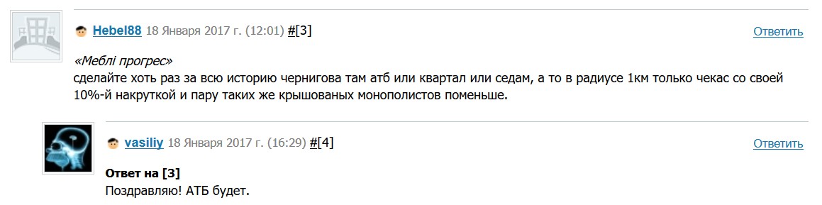 В пресс-службе сети магазинов «АТБ» пробив по базе город и адрес, данную информацию опровергли, более того, сказали, что в городе Чернигов до марта никаких открытий магазинов не планируется.