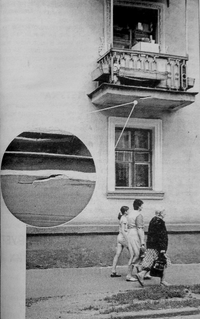 Глядя на него, трудно определить, что же все-таки опаснее: стоять на этом балконе или проходить под ним? Очевидно, - и в том, и в другом случае риск примерно одинаков.