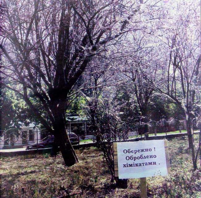 Деревья и цветы - украшение любого города. Чернигов издавна славится своим великолепным зеленым убранством. Но этим летом удивленный взор горожан то и дело натыкается на совершенно голые, окутанные флером паутины деревья. Особенно много их на бульваре по проспекту Мира. А несколько дней назад возле пораженных деревьев появились таблички с устрашающей надписью: "Осторожно! Обработано ядохимикатами". В редакцию тут же начали поступать звонки от взволнованных горожан, которых интересует, насколько безопасно сейчас гулять на обработанной ядохимикатами территории?