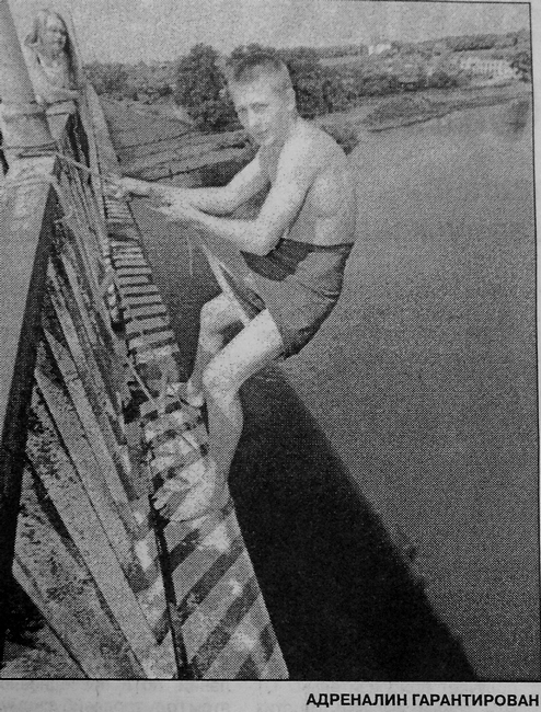 В однообразном течении будней многим из нас не хватает острых ощущении. Ну, например, рискуя жизнью, покорить горный пик или погрузиться с аквалангом на морское дно. Вот и ищут такие люди приключений на свою голову, и многие, между прочим, находят. А поскольку в нашем городе нет ни горных вершин, ни морских пучин, любителям экстрима приходится довольствоваться тем, что есть в наличии, а именно - пешеходным мостом через Десну.