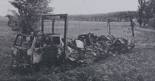 Все, что осталось от грузового автомобиля "Мерседес" и 50-ти холодильников