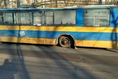 Утром 30 января в Чернигове на улице Любечской (рядом с еврейским кладбищем) у троллейбуса №5 отпало заднее левое колесо.