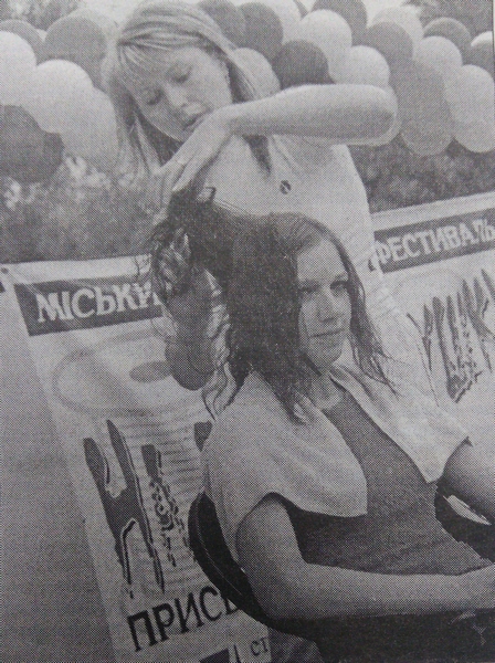 Прическу можно было сделать, кстати, и не отходя от кассы, то есть сцены. Мастера салонов "Ева", "Мария” и "Лола” взялись сделать прически четырем участникам фестивальной тусовки прямо на глазах у публики. Получилось неплохо - во всяком случае, мастера доказали, что они способны успешно работать в самых экстремальных условиях.
