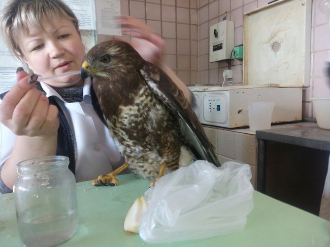 — В принципе, да. Девочек наших потом немного клевала, а меня не трогала. У птицы были обморожены лапы. Когда она стала отогреваться, с них даже вода потекла. Мы ее отпаивали из пипетки. Воду она пила. А вот накормить ее было сложно. Давали яблоки, хлеб, вареные яйца.