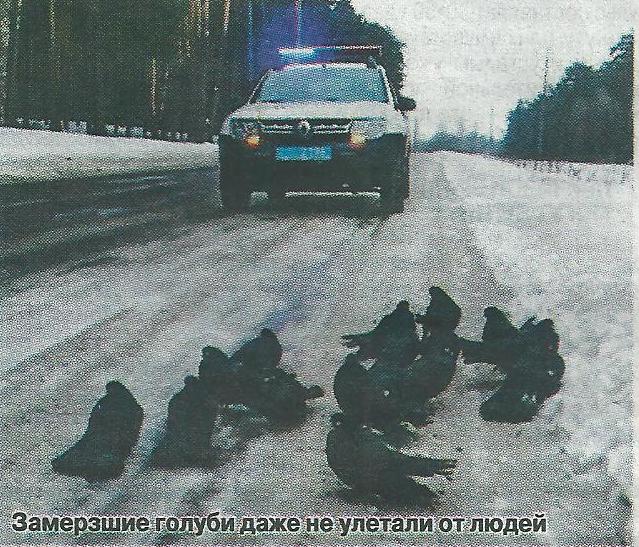 А в Чернигове 2 февраля около четырех часов дня вблизи перекрестка улиц Циолковского и Гагарина прямо на проезжей части сидела стая... породистых декоративных голубей. Их потом насчитали 15 штук.