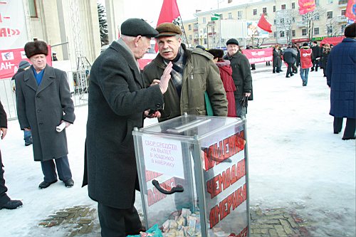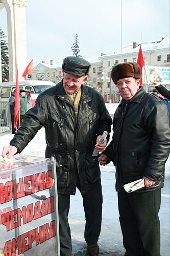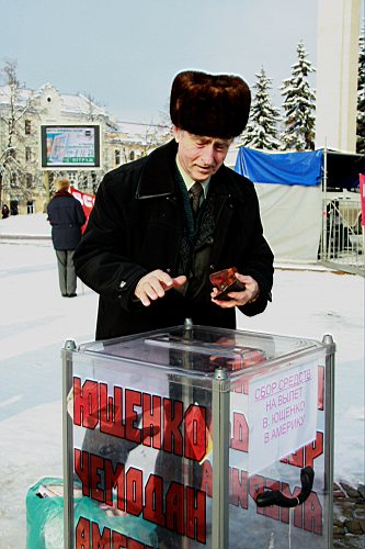 Сегодня, 20-го февраля, на Красной площади в Чернигове проходил митинг под тэгом «Ющенко, чемодан, Америка». Собралось около 200 человек, площадь была перекрыта для проезда транспорта. Главным организатором являлась коммунистическая партия.
