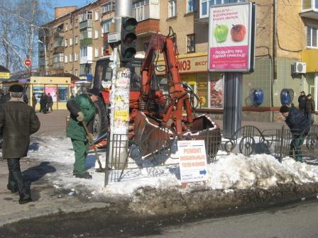 Минулі два місяці довели аварійність та зношеність трубопроводів. Чого варта лише аварія на каналізаційному колекторі, що трапилася в Чернігові 19 лютого поблизу мазутосховища, в результаті якої не виключене попадання каналізаційних стоків у Десну, що може потягнути за собою надзвичайні наслідки не лише для міста Чернігова, але й для столиці, адже більшість киян п'ють воду саме з Десни. Заміна аварійної ділянки протяжністю 2 кілометри обійдеться міському бюджету в 10 мільйонів гривень. Натомість міські комунальні служби 23 лютого займаються прибиранням та вивезенням снігу з центральних районів міста, свідченням чому є наступні фото…