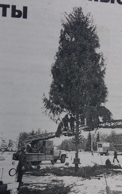 На трех машинах составные части зеленой красавицы, на радость детворе и взрослым, уже доставлены на центральную площадь областного центра. Высота елки - 2005 - 16,7 м, это почти на метр выше прошлогодней.