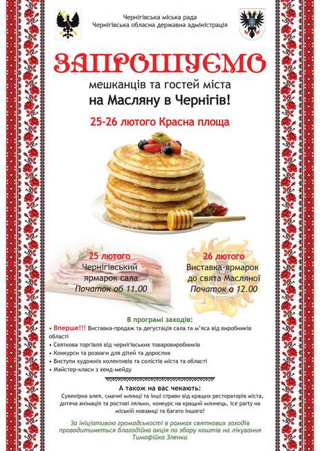 Програма проведення святково-ярмаркових заходів до свята Масляної та Чернігівського ярмарку «Сало-2017»