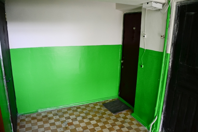 В коридорі біля квартири, де затримували злочинця, не залишилось жодних нагадувань про ті події
