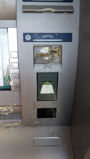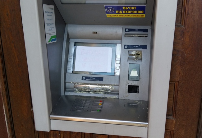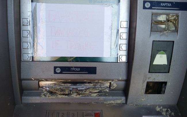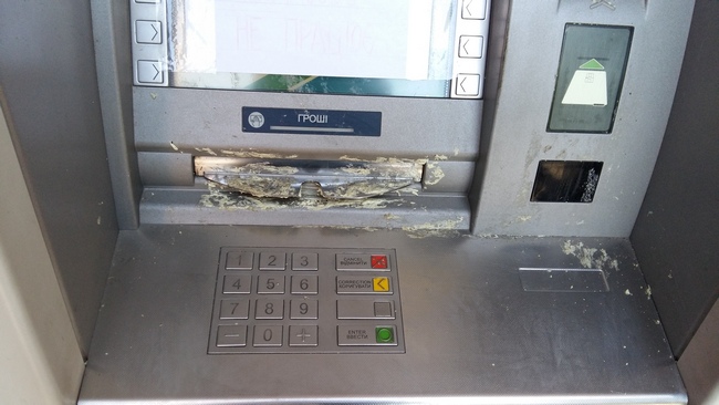 Банкомат российского банка в Чернигове облили монтажной пеной