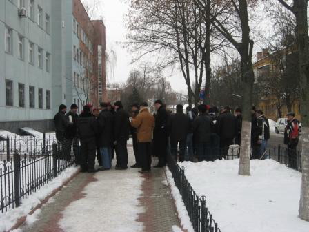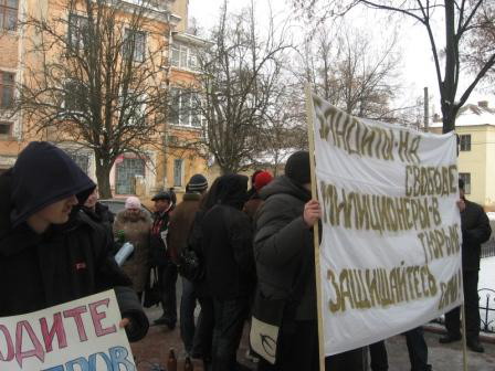 Сьогодні, 26 лютого слідчим обласної прокуратури працюється не так, як завжди, а , як кажуть в народі, “під шумок”. Стук пластикових пляшок, вибухи петард, постійні вигуки в гучномовець, та ще й народу зібралося на вході чималенько (чоловік сорок) - так, що виходити прокурорам на вулицю доводилось через чорних хід.