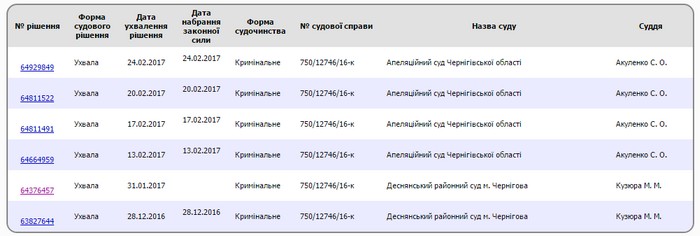 Спочатку справа розглядалася в Деснянському суді першої інстанції (головуючий суддя Кузюра М.М.) в кінці грудня. Згідно даних судового реєстру Любомирського и Остапенко підозрюють кримінальних правопорушень, передбачених ч. 4 ст. 191 (Привласнення, розтрата майна або заволодіння ним шляхом зловживання службовим становищем у великих розмірах, - караються позбавленням волі на строк від п'яти до восьми років з позбавленням права обіймати певні посади чи займатися певною діяльністю на строк до трьох років.), ч. 1 ст. 366 (Службове підроблення, тобто внесення службовою особою до офіційних документів завідомо неправдивих відомостей, інше підроблення документів, а також складання і видача завідомо неправдивих документів-карається штрафом до п'ятдесяти неоподатковуваних мінімумів доходів громадян або обмеженням волі на строк до трьох років, з позбавленням права обіймати певні посади чи займатися певною діяльністю на строк до трьох років.), ч. 1 ст. 209 КК України (Легалізація (відмивання) грошових коштів та іншого майна, здобутих злочинним шляхом).