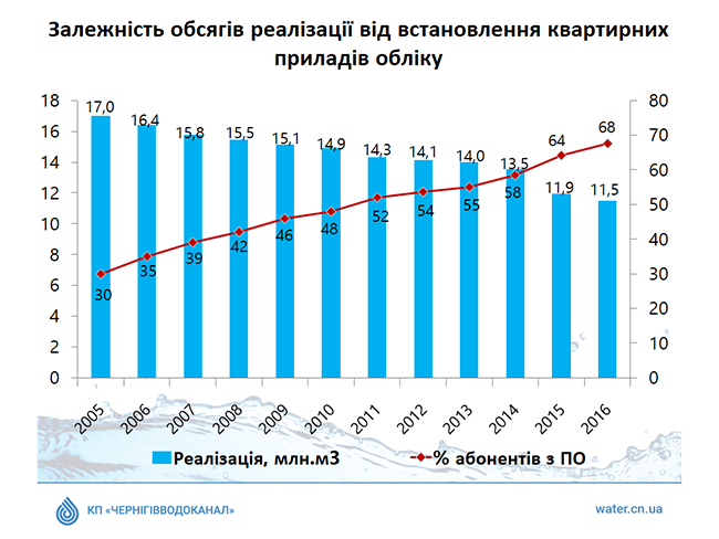 Так, по заявлению директора КП «Черниговводоканал», существенной проблемой остаются потери из-за наличия разницы между показателями общедомовых узлов учета и объемами реализации по данным квартирных счетчиков и потреблению по нормам. На сегодня эта разница составляет 25%, при этом предприятия теряет как минимум 1,5 млн. грн. ежемесячно.