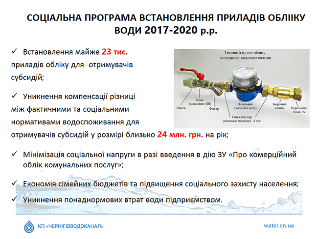 После принятия Закона «О коммерческом учете», который выносится на рассмотрение ВР во втором чтении и проведении расчетов по домовым приборами учета, по мнению директора «Черниговводоканала» произойдет сокращение потерь воды до 10%.