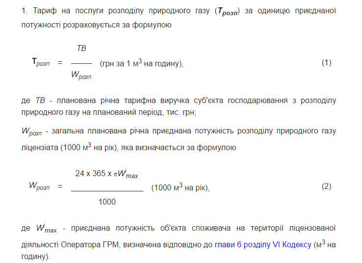 Формулу рассчет тарифа на услуги распределения газа можно посмотреть по этой ссылке: http://search.ligazakon.ua/l_doc2.nsf/link1/RE29564.html