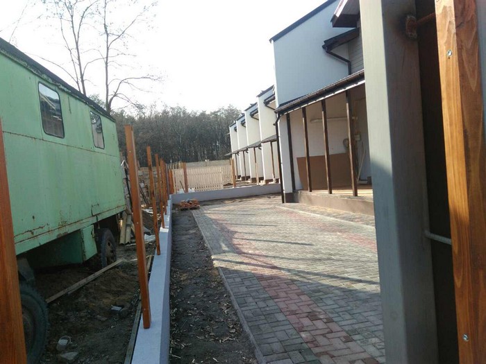 Каждый домик общей площадью 80 квадратов, 2 санузла на первом и втором этажах. На первом, согласна плану размещения: квадратный холл, кухня на 16 метров и санузел, лестница на второй этаэ. На втором этаже 2 комнаты по 16 квадратов и саунзел. Есть домики без ремонта, а есть с ремонтом - за отделку деревом и весь ремонт придется доплатить еще 10 тысяч долларов. Голые стены продаются по цене 46 тысяч долларов. По документам дом будет стоить столько же, цену занижать не будут, как в случае со старостроем, который можно подать на бумагах значительно дешевле. Принципиальная позиция застройщика – оплата в долларах, но можно договориться и в гривнах по курсу НБУ, если клиент будет очень настаивать. Каждой семье полагается участок 2 сотки. Комиссию риелторам платить не нужно, ее оплачивает продавец. А вот на оформление придется раскошелиться, оно обойдется примерно в 20 тысяч гривен.
