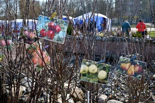 На апрельской выставке-ярмарке широко представлены плодово-ягодные саженцы, цветы и цветущие кустарники, хвойные уличные растения, семена овощей и препараты от вредителей, посевной лук, картофель и др.