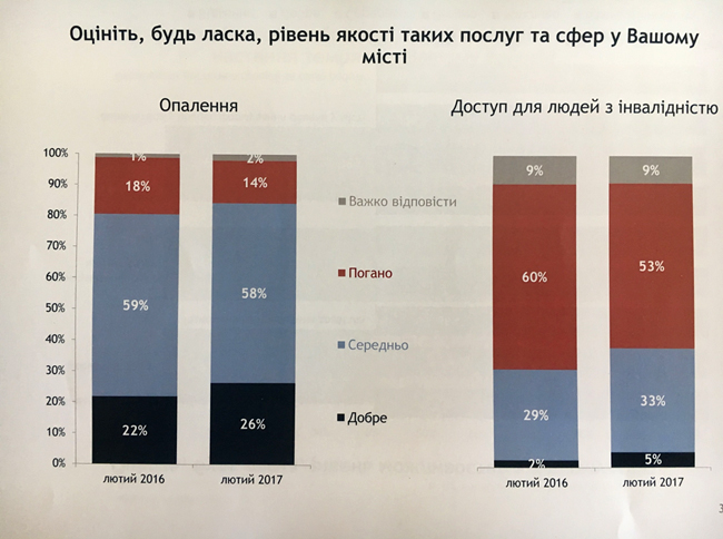 – Качество услуги отопления осталось, практически на том же уровне. Доступ к городской инфраструктуре людей с инвалидностью улучшился малозначительно. И на это следует обратить внимание.
