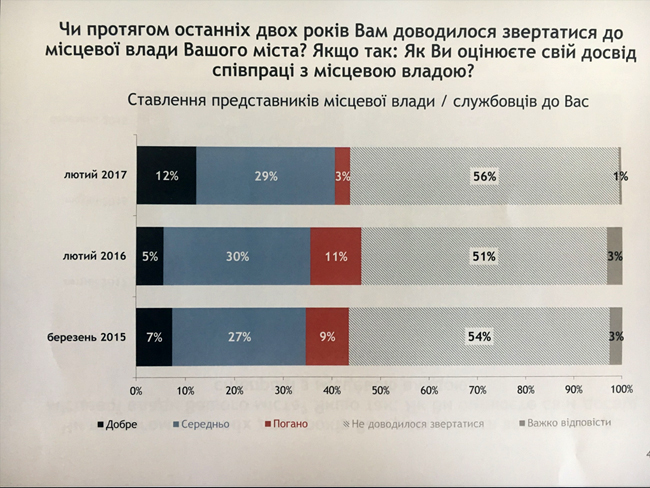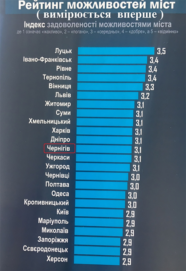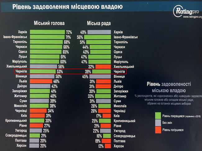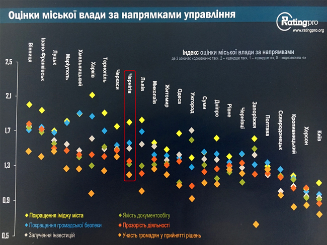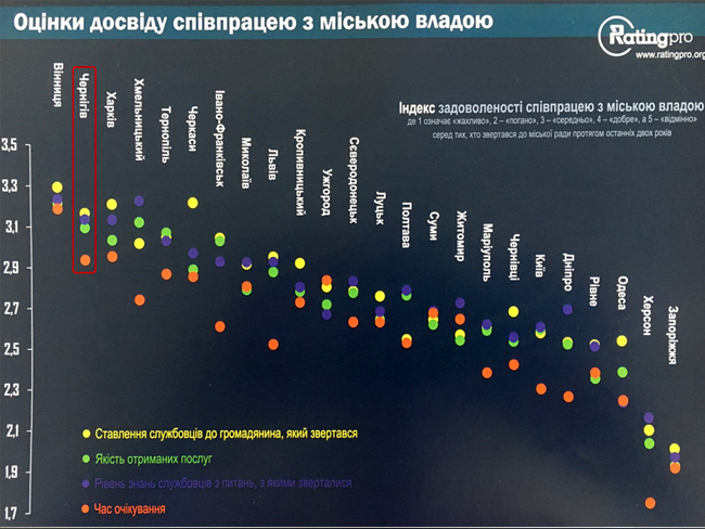 – Очень высокой является оценка сотрудничества с городской властью. Здесь Чернигов на втором месте, после Винницы.