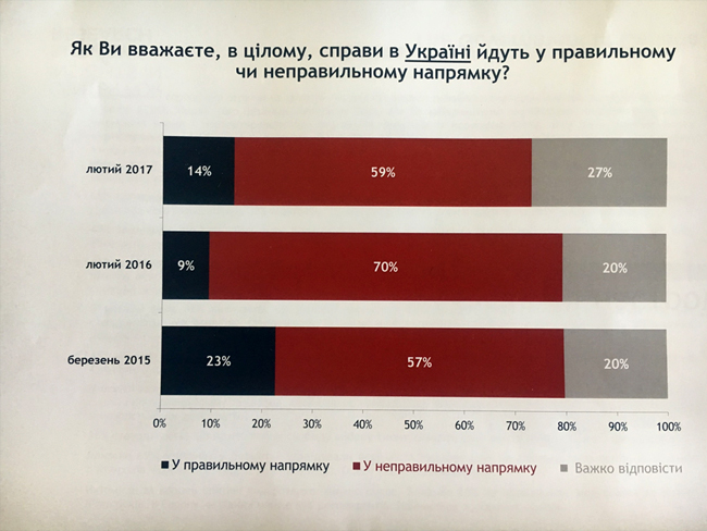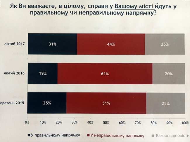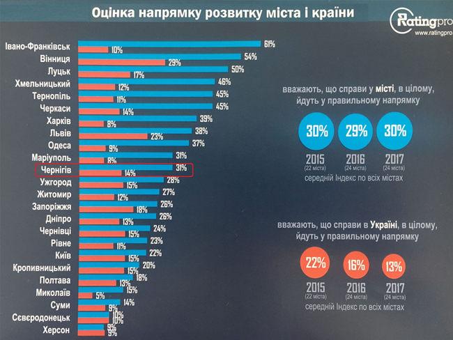 – Интересно то, что среди жителей Чернигова 31% опрошенных считает, что город движется в правильном направлении развития. То же самое о развитии страны может сказать только 14 % респондентов.