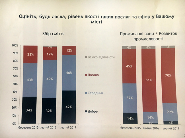 – За прошедший год оценка жителями города сбора мусора улучшилась на 10%. А вот оценка развития промышленности Чернигова хоть и сократила негативные отзывы, но позитивные тенденции идут не такими значительными темпами, как хотелось бы.