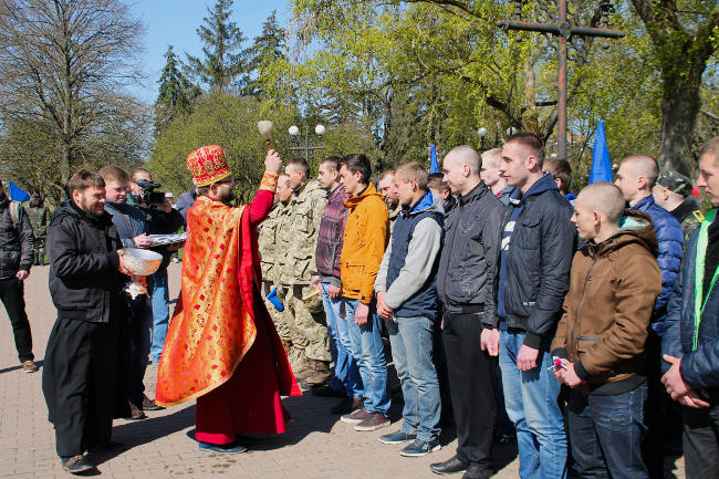 – Сегодня, на этом святом месте, мы отправляем в ряды Вооруженных Сил Украины 30 военнослужащих. Уже военнослужащих, потому что они уже получили первичное воинское звание – солдат. Всего за весенний призыв планируем отправить в ряды Вооруженных Сил Украины 235 военнослужащих, 110 в Национальную гвардию и 70 в Государственную службу транспорта. Призыв идет по графику без срывов. Призывники имеют неплохое здоровье, хотя есть некоторые аспекты, что здоровье молодежи в не очень хорошем состоянии. Самое главное, что согласно решения Президента Украины, главнокомандующего ВСУ, ни один призывник срочной службы в зоне АТО проходить службу не будет, – сказал полковник Александр Криворучко, военный комиссар Черниговского областного военного комиссариата.