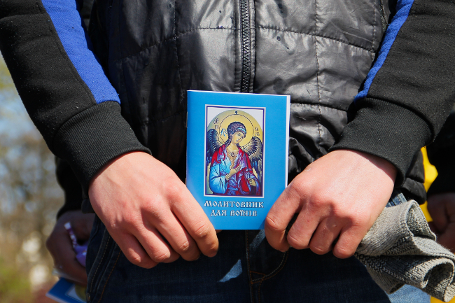 Благословил солдат настоятель храма Святой Екатерины отец Роман. Черниговские студентки и волонтеры вручили молодым ребятам обереги.