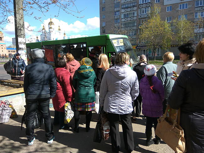 Со стороны ул. Рокоссовского в сторону Яцево шли автобусы №14 и №26, но сесть в них было не реально. Набитые до отказа, «Газели» (как их не называй, они «газелями» остаются) ехали, не останавливаясь в местах, предусмотренных расписанием. Фактически, водители маршруток, нарушая правила перевозок, подвергли риску жизни пассажиров. Но, с другой стороны людям нужно было ехать и они с силой втискивались в полусгнившие «кибитки»...