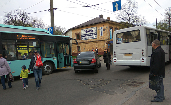 Прибывший владелец маршрута недолго думая, заявил хозяйке AVEO, что нанесенный ею ущерб оценивает… в 1500 грн. минимум. После этого стал рассказывать о проблемах, с которыми столкнется водитель, виновный в совершении ДТП, если к месту аварии придется вызывать полицию.
