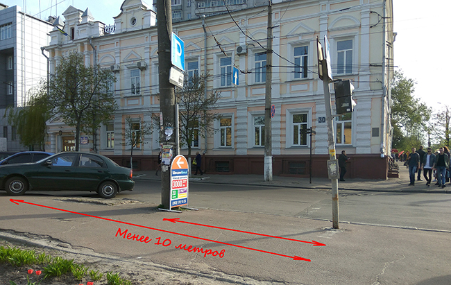 Также следует отметить, что остановка транспортных средств ближе 10 метров от пешеходного перехода запрещена, то есть знак 5.38 «место для стоянки», установлен с нарушениями ПДД и влияет на аварийность в районе ул. Кирпоноса.