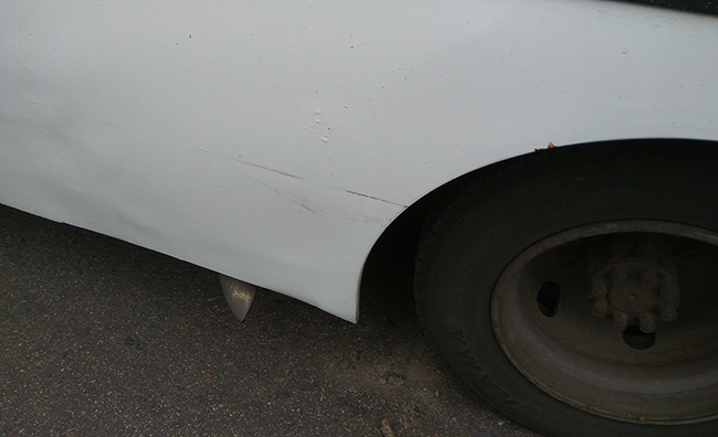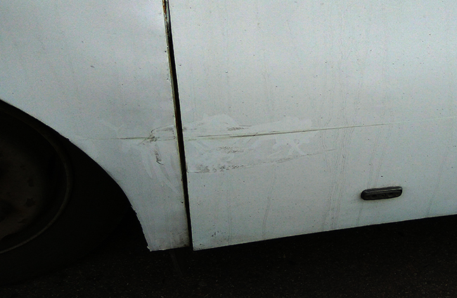 Находившаяся в стрессовом состоянии женщина готова была заплатить «за нанесенный ущерб», но могла дать не более 1000 грн. Со стороны вся ситуация была похожа на «развод» неопытного водителя. По субъективному мнению, устранение нанесенного ущерба никак не стоило озвученной суммы. Тем более, что на нижней части автобуса уже были заметны следы неоднократной рихтовки металла и вздутия краски от находящейся под ней ржавчины. Да и сама покраска, судя по потекам и наслоениям, выполнялась в гараже не слишком опытным маляром. Стоявшие рядом наблюдатели советовали перевозчику взять предлагаемую 1000 грн и не раздувать проблему. Но тот, меньше, чем на 1500 грн. никак не соглашался.