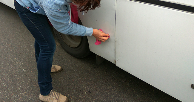 В то время, как полиция общалась с перевозчиком, хозяйка AVEO пыталась стереть следы с борта автобуса. По ее словам, на автобусе даже не было царапины от ее автомобиля.