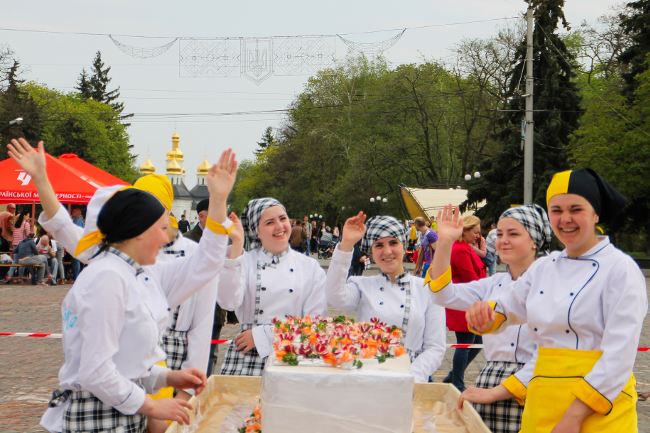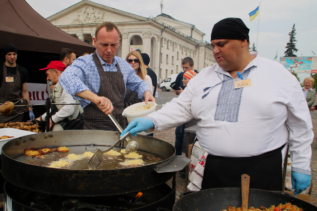 После торжественного открытия, на сцене выступали художественные коллективы города, а мэр принял активное участие в приготовлении украинского национального блюда – дерунов.