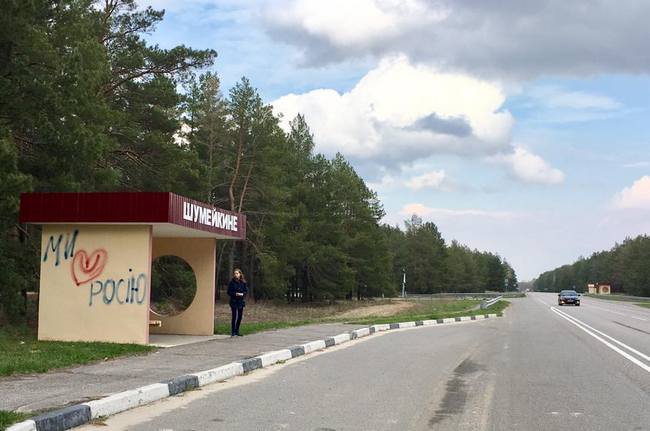 Не встиг «ВісникЧ» у вівторок, 18 квітня, звернутися до Служби автомобільних доріг у Чернігівській області, що на зупинці та вбиральні біля Шумейкиного Бахмацького району є написи «Ми любимо Росію» та слово «кляті» біля червоно-чорного прапора (див. випуск №16 від 20 квітня 2017), як наступного дня пролунав дзвінок у відповідь.