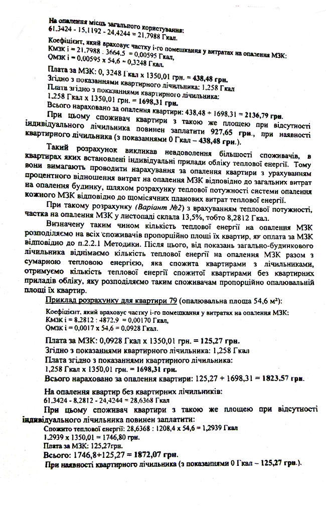 Всего же, за период с 1 сентября 2010 года по 16 июля 2012 года долг за отопление этой квартиры составил 53569 грн.64 коп.! Если учесть, что отопительный сезон за этот период составлял всего 13 месяцев, то фактически, за отопление 1 кв. м жилья абонент должен был платить 42 грн. в месяц, в то время как согласно утвержденным на тот период времени тарифам (если бы в доме не было прибора учета) абонент платил бы в месяц всего 6 грн. 51 коп. за тот же квадратный метр отапливаемой площади!