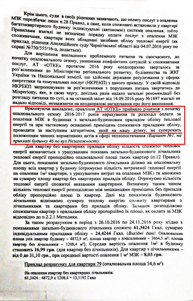 Но, в 2015 году она не получила большой огласки, поскольку проблемы одного отдельно стоящего дома никого не интересуют. После инцидента в доме №155 по проспекту Победы ПАО «Облтеплокоммунэнерго» (ОТКЭ) изобрело свою формулу расчетов и уже в следующем отопительном сезоне оплату за несколько квадратных метров подъезда в размере нескольких тысяч гривен начали получать сотни жителей Чернигова.